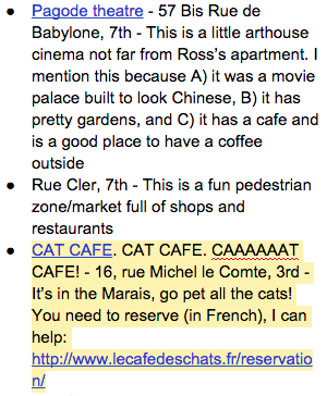 - Weird tourist attractions. I looooooove bizarre museums, creepy graveyards, strange statues (the Mary Tyler Moore statue in Minneapolis, anyone?): stuff that’s just generally off the beaten path. I’ll punch stuff into Google like “Weird things to do in [city name]” and inevitably find sites like Atlas Obscura, Roadside America, Cool Stuff in Paris, and so. Perfect Internet black hole material!